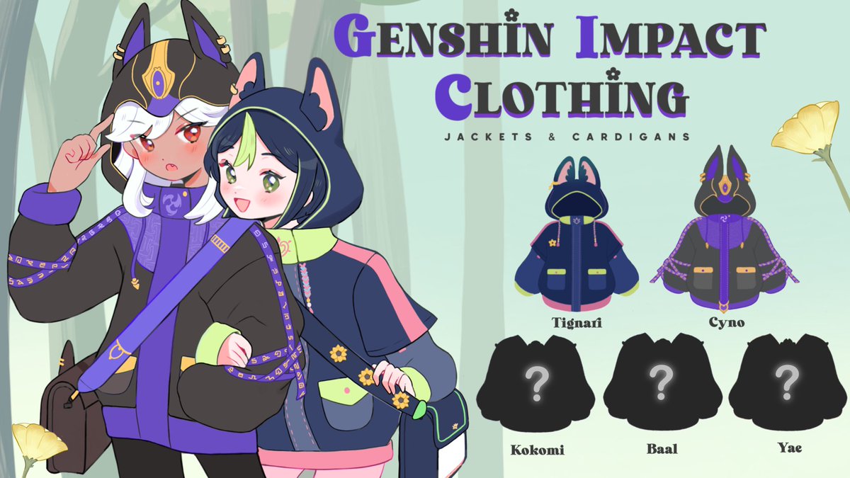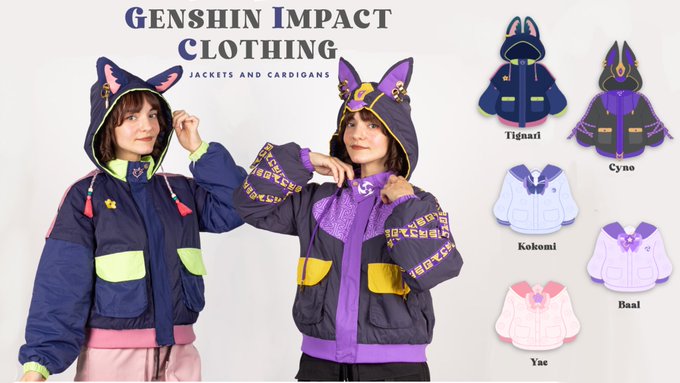 [RT VERY APPRECIATED! 🥺] JACKETS AND CARDIGANS Kickstarter has just STARTED! All available characters: ♥️TIGHNARI ❤️CYNO 🧡KOKOMI 💛YAE 💚BAAL 💙KAZUHA 💜HU TAO 🤍ALBEDO Sharing this would help me a lot, thank you very much 🥹! LINK BELOW! #GenshinImpact