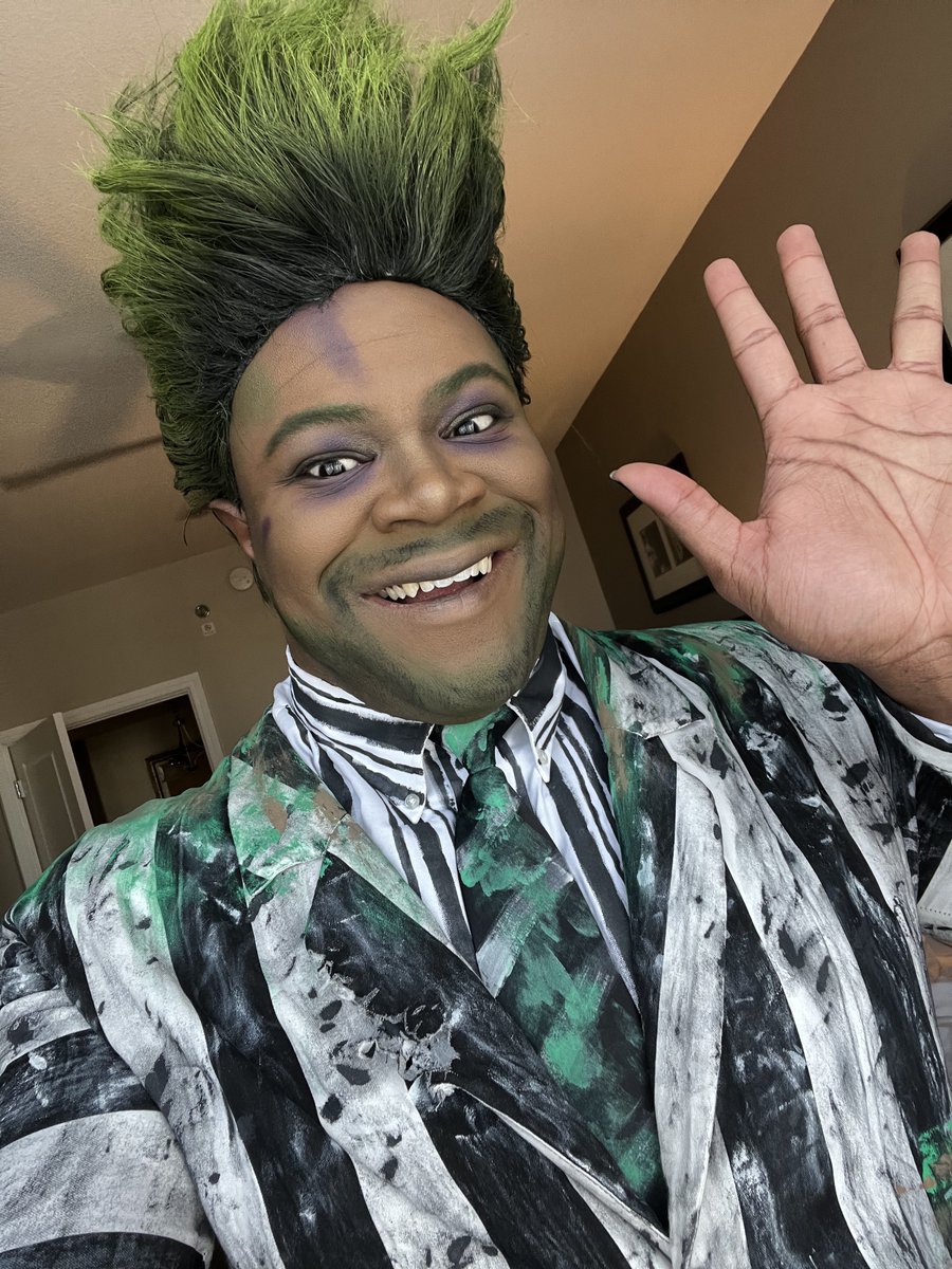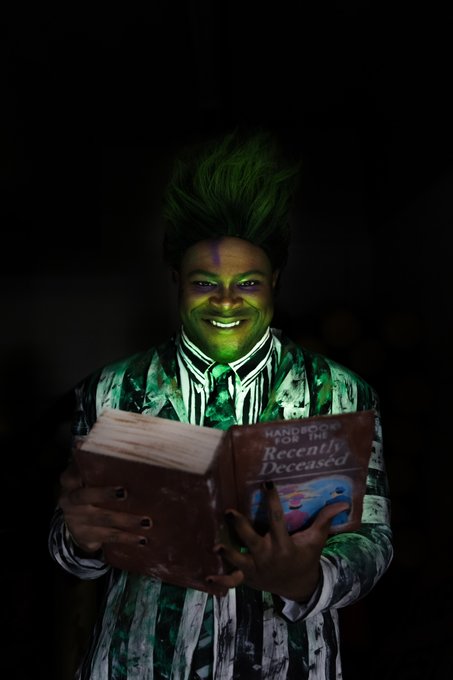 The haunting of Katsucon🖤👻💚🪲 #28DaysOfBlackCosplay Had such a blast wearing this out FOR THE FIRST TIME AT KATSU!! I’m so happy that everyone loved the detailing I did and loved the book I made! Can’t wait to bring the demon man to more cons! 📸@TaylorPettitt