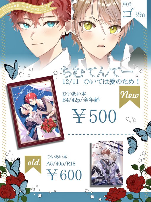 【おしながき】 12/11ひいては愛のため! 新刊と既刊をすこし頒布予定です。 東6ゴ39aでお待ちしております🙌 ========================== サンプル→ pixiv.net/artworks/10346… ※既刊を購入される際は年齢確認をさせて頂きます。