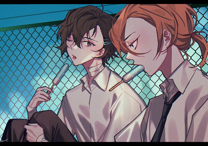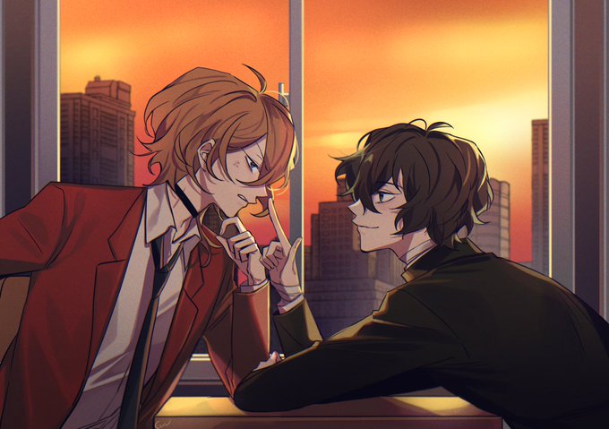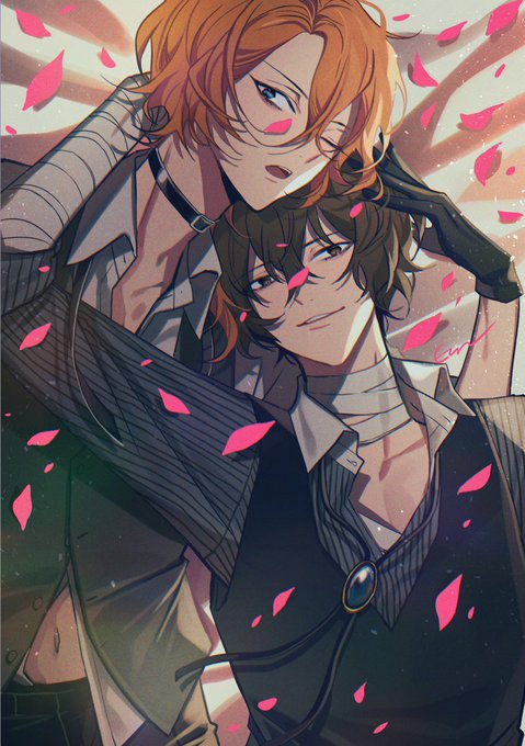 #다자츄의_시간 [유월의장미] 의식의 흐름이지만 장미꽃 사서 다자이 생일 축하해주는 츄야입니다 ㅎㅎ,,