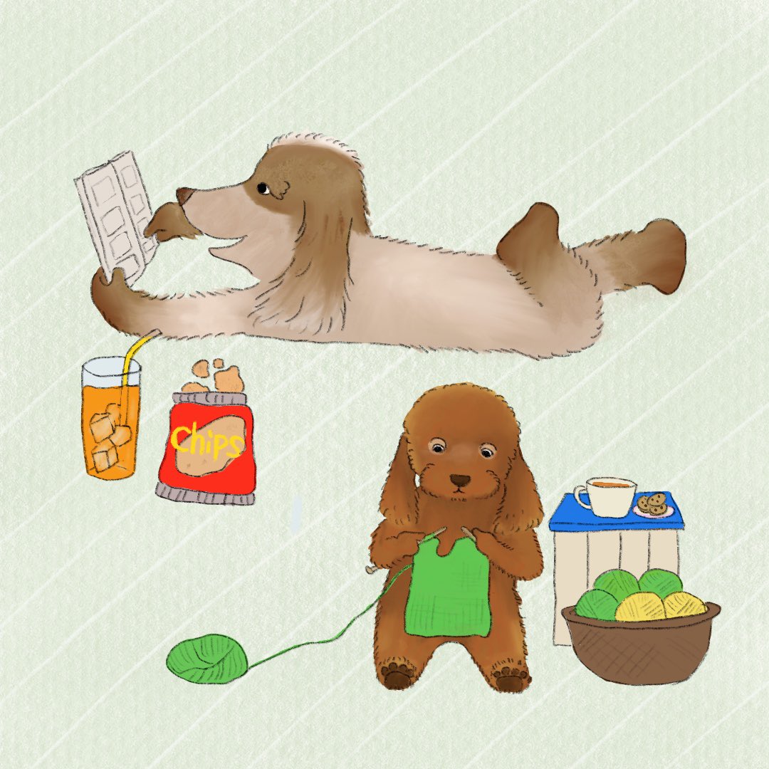 0 8 編み物する犬と漫画を読む犬 #イラスト #いぬいらすと #編み物 21/11/05 22:49