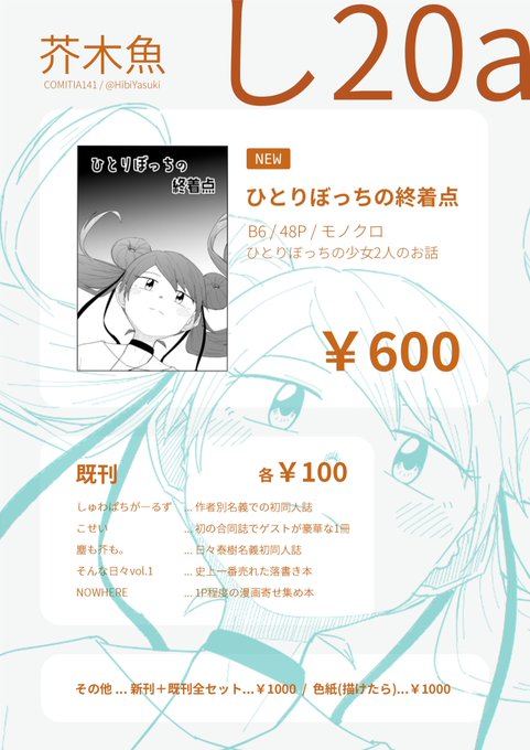 5 20 コミティア141 芥木魚【し20a】 設営完了しました!! 新刊+既刊全セット残り1部です! #COMITIA141 22/09/04 11:09