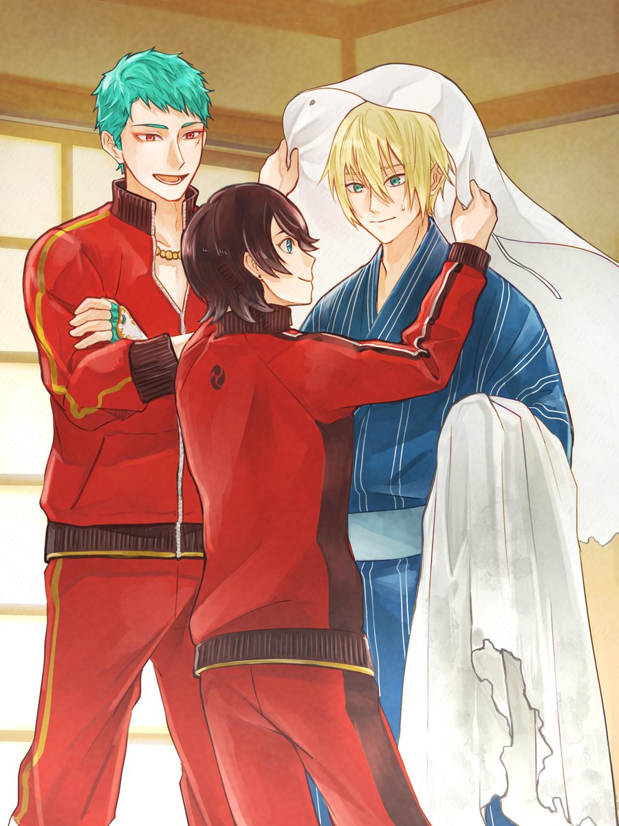 夏の連隊戦、本丸に一時帰還🏯 北谷菜切「びしょ濡れさ〜…」 秋田「しっかり拭いてくださいね」 同田貫「おい、水分もとれよ。追加の水持ってきたからな」 ————————————— 北谷菜切・千代金丸・治金丸・秋田・同田貫 #刀剣乱舞