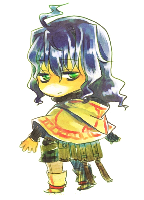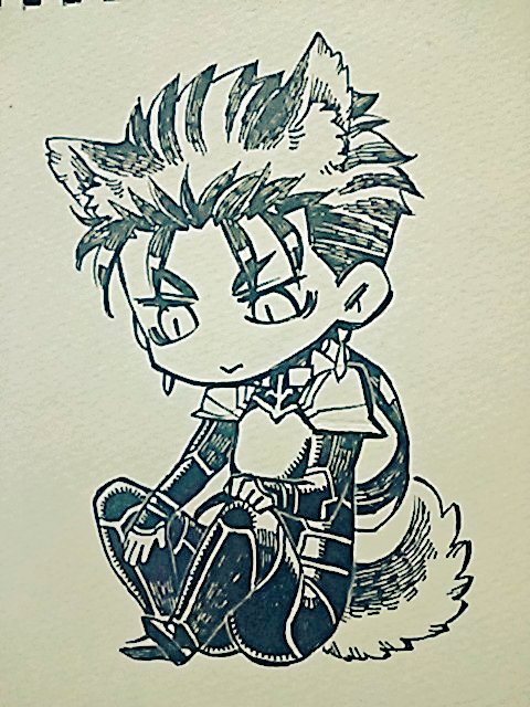 今日落書きしてた、犬耳と尻尾付いた槍ニキ。妙な表情になった…
