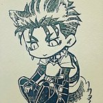 1 19 今日落書きしてた、犬耳と尻尾付いた槍ニキ。妙な表情になった… 18/09/24 22:25