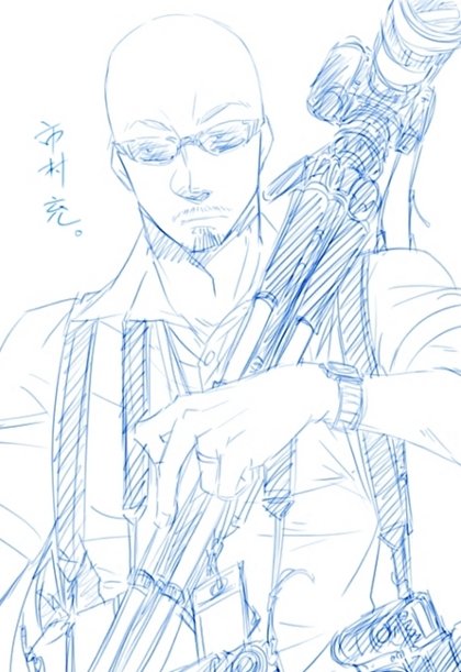 鶴見中尉を落書き。思わず色も付けたけど、団子に苦労した…