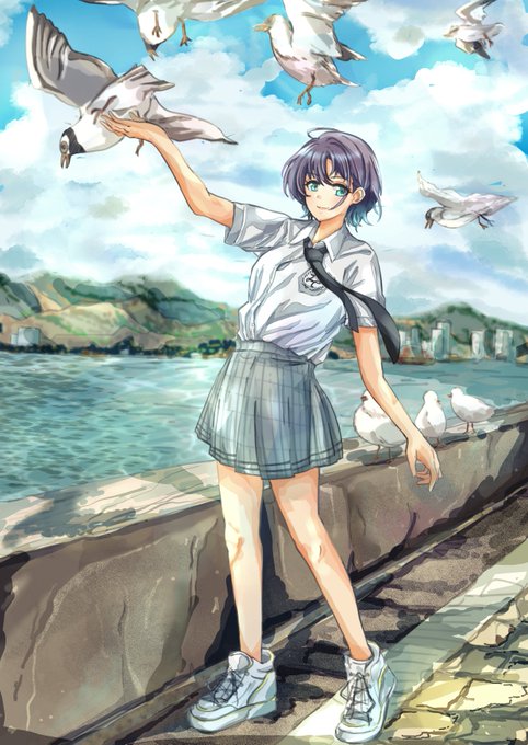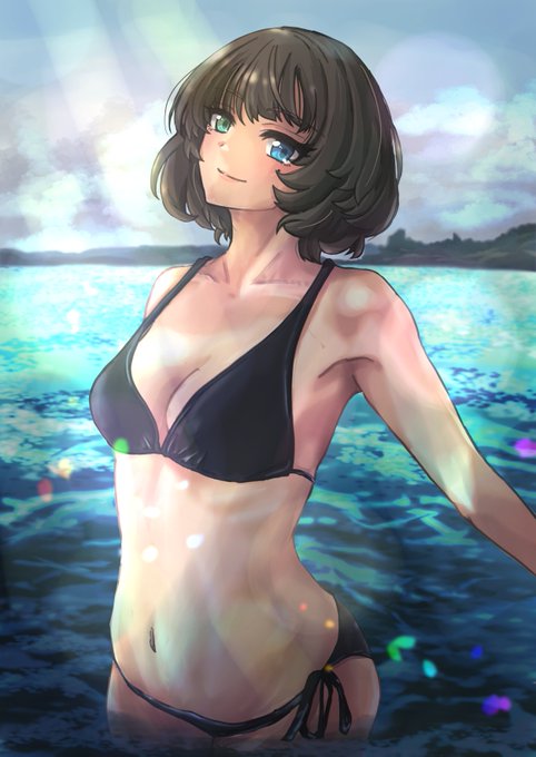 まだ9月だし、風の戦士の水着絵を描いてもいいでしょう。なお、秋冬春でも描く模様。 #七尾百合子