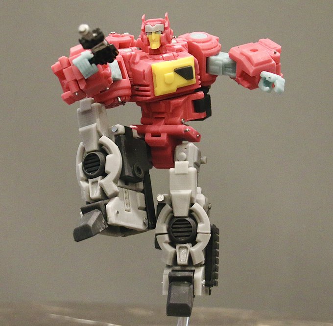 Here’s my take on a BotBots Jaqueline! She’s roughly the size of a Core Class and would be around 1:2 scale basing on her alt mode. She’s my favourite from the show. I’ll get the files out soon. Waiting for magnets to embed to click the head together. More pics below.