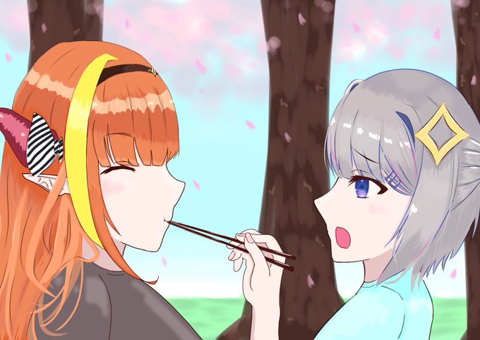 31 95 『花見』 かなた「もぉ~ココ、自分で食べなよぉ~」 ココ「んん~んまいっ!!」 #みかじ絵 #かなたーと #かなココ 22/03/14 01:15