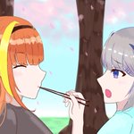 『花見』 かなた「もぉ~ココ、自分で食べなよぉ~」 ココ「んん~んまいっ!!」 #みかじ絵 #かなたーと #かなココ