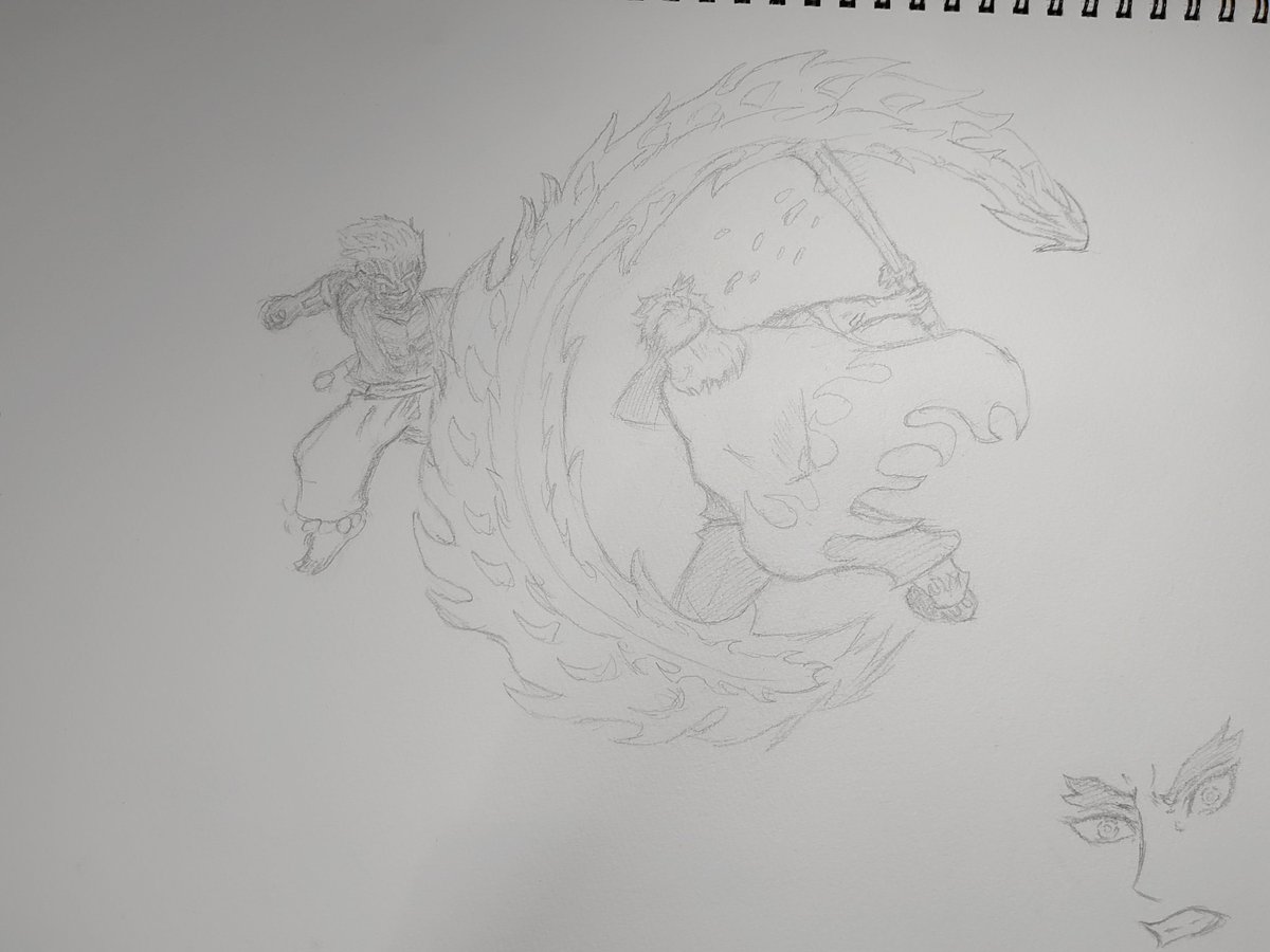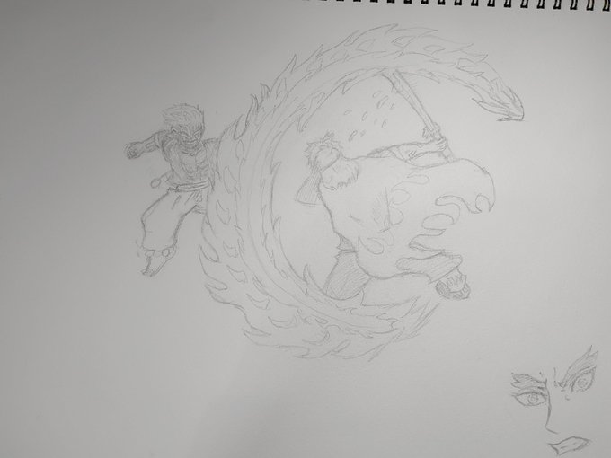 チョリオースッ ·鬼滅の刃より 炎柱·煉獄杏寿郎VS上弦の参·猗窩座 オリジナルバトルシーン描きました! めちゃくちゃ時間が空いてしまった…久々描くと…あれ……結構良くね…?と思ったのは錯覚ですか? #鬼滅の刃 #猗窩座 #煉獄杏寿郎 #絵師さんと繋がりたい #絵描きさんと繋がたい #アナログ絵