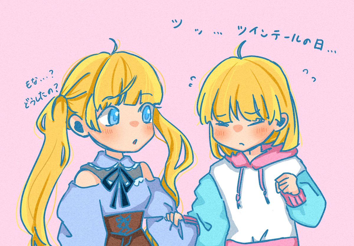 結んで欲しいけどなんか恥ずかしいもなちゃん #ツインテールの日 #HoneyWorks #超絶かわいい #イラスト好きな人と繋がりたい #絵描きさんと繋がりたい #尊い姉妹