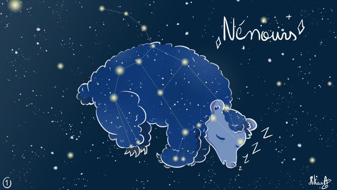 Mon premier dessin pour le #orbetober créée par @Orbesonge C: Appelé Nénours, c'est une chimère de type Ursidé, Ovidé avec comme attribut les étoilleuuuuh ✨✨🤩 #inktober2021