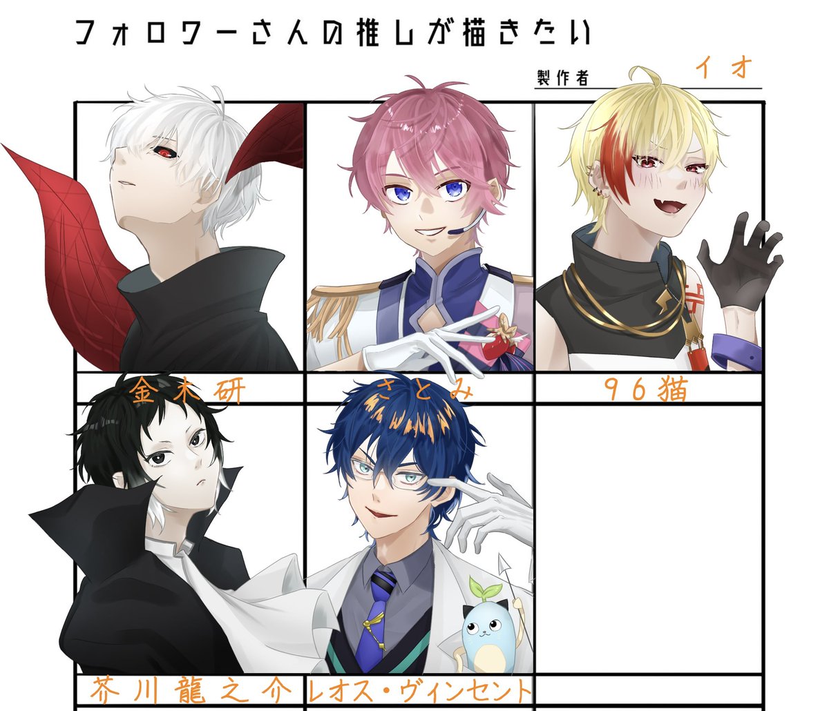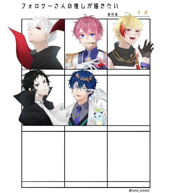 5人の方ありがとうございましたー!! ゆっくり楽しくかかせて頂きました!! 普段かかない人かくのたのしかったです😊 #フォロワーさんの推しが描きたい