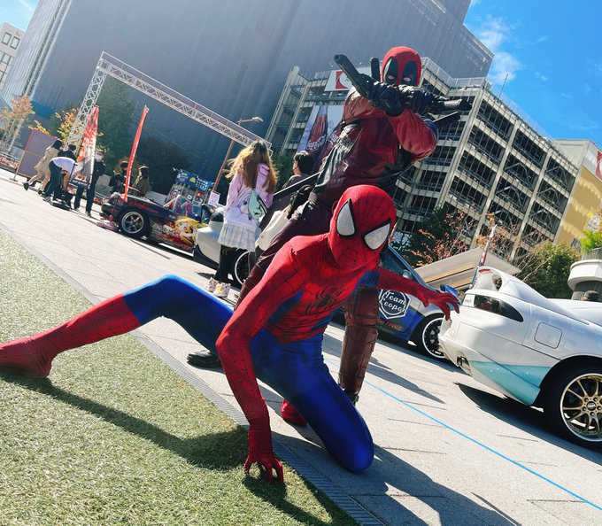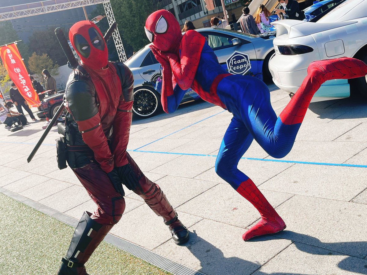 2 14 かっこいい〜ポーズと可愛い〜ポーズをとってくださった🕷とデップー様🥹 お写真勝手に載せてすみません!! 超〜いい感じに撮れたのでご本人様達に届いてほしい😭🙏✨ #くまフェス 22/11/06 16:45