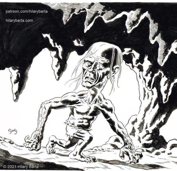 Inktober is creeping back into its cave to hibernate until next year. #inktober2021 #inktober #inking #gollum #lordoftherings #monsters #cartooning #halloween2021 #halloween