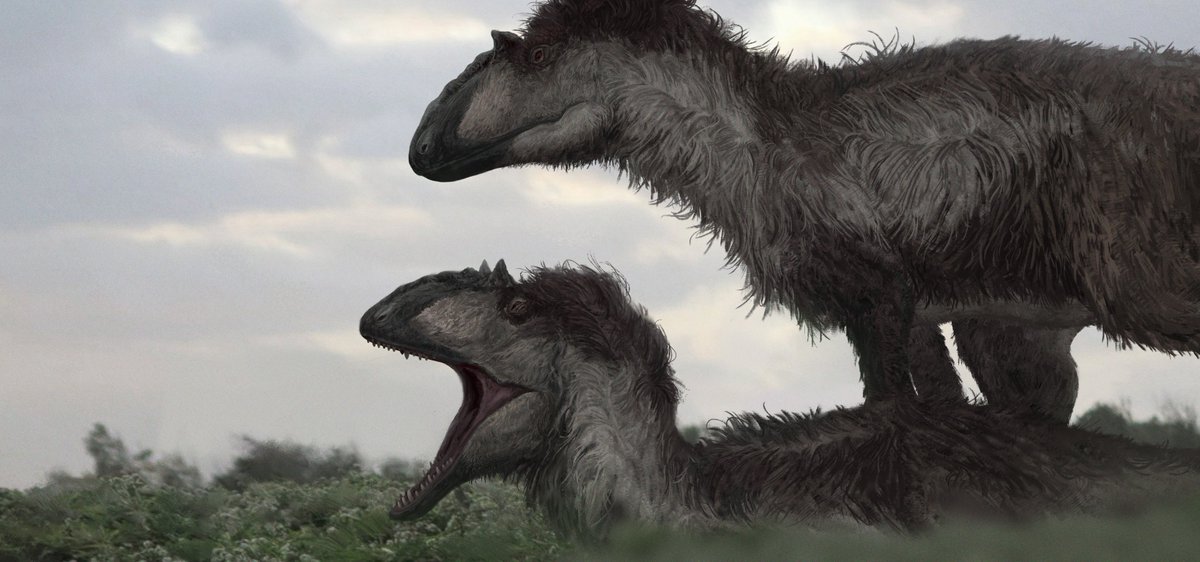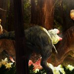 An old commissioned piece depicting a pair of hypothetical Asiatic tyrannosaurines descendants attempt to drive an Albertosaurus off its kill. Partly inspired by Phil Tippet’s Prehistoric Beast amazing lighting.