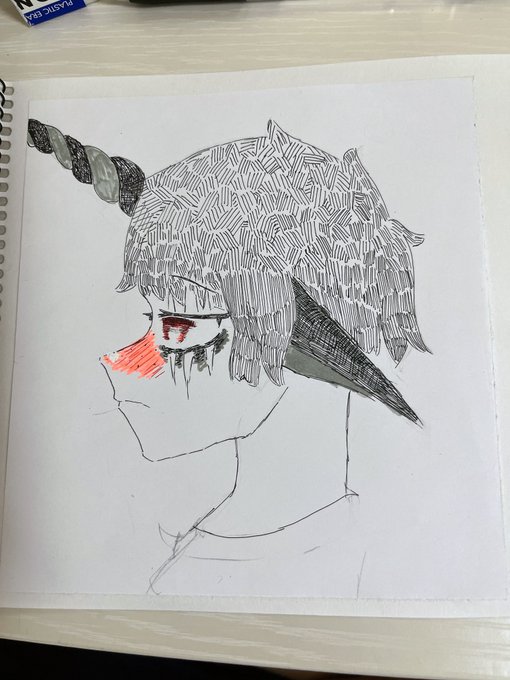 0 6 前描いたやつとリメイク?のやつ #イラスト好きさんと繋がりたい #イラスト #人外 #落書き #アナログ 22/09/03 19:00