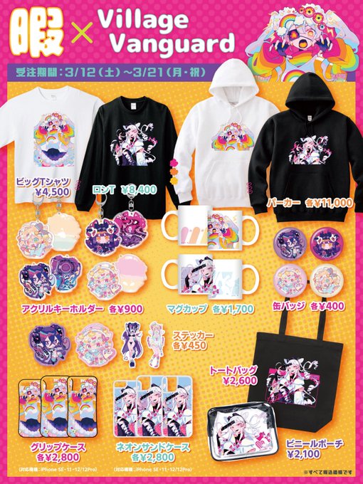 ヴィレッジヴァンガード様、オンラインストアにて、暇コラボグッズを販売させて頂けることになりました! 【受注期間▶︎ 3/12(土)〜3/21(月・祝)】 🌈詳細 village-v.co.jp/news/item/12598 🌈販売ページ vvstore.jp/feature/detail… 全てとっても可愛い仕上がりになっています、何卒よろしくお願い致します☀️