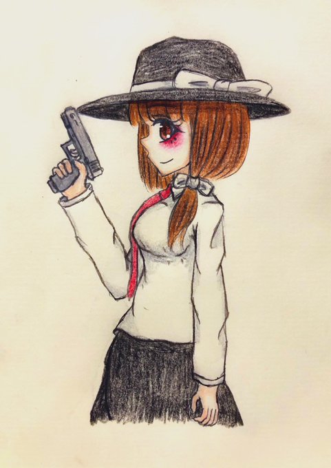 10 43 #深夜の真剣お絵描き60分一本勝負 #いい銃の日 #宇佐美蓮子 いい銃の日なので銃持った蓮子さん 20/11/10 23:00