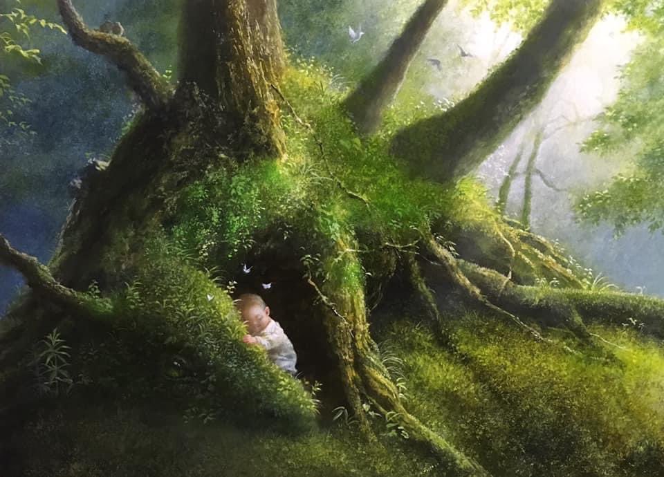 「懐の温もり」 サイズ: SM号 素材: 油彩、ジェッソ、パネル 制作年:2022年 #art #oilpainting #nature #dragon #artwork #fantasyart #絵画 #油彩画 #自然 #龍 #himenakokufuta #國府田姫菜 #すみれ画廊 #gallerysumire #artglorieuxgallery