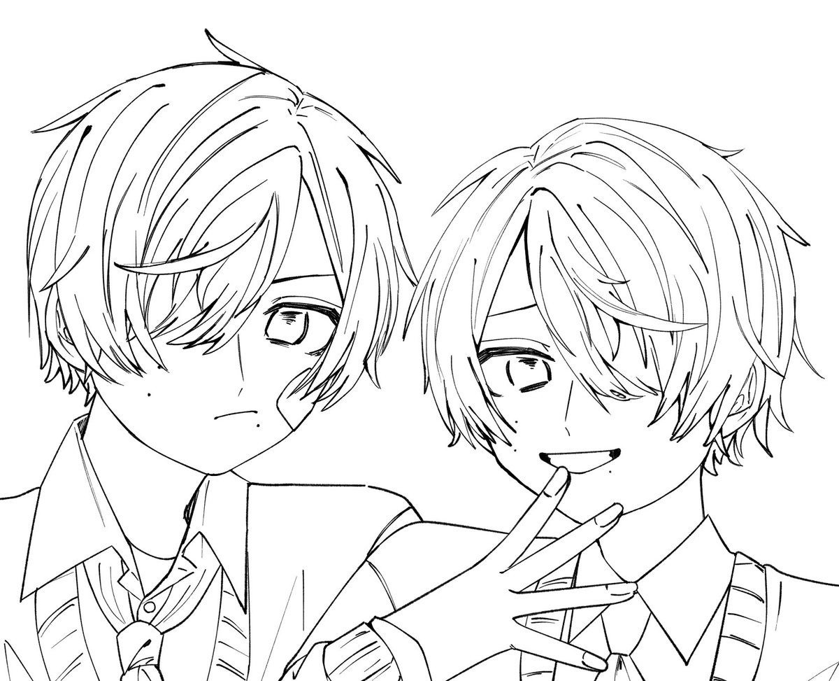 0 9 お気に入りの双子ちゃん 色塗りする気力がない… #イラスト #うちの子 #線画 22/06/13 16:11