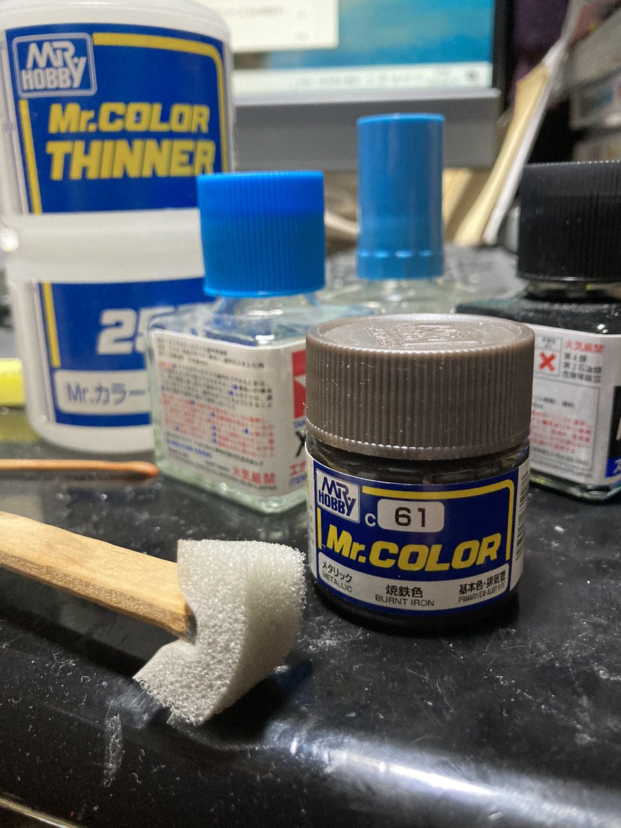 #Re俺達のアナザー 用のキット、今回はミキシング等は諦めて塗装のみ! 初めての黒立ち上げに挑戦しました。 まだ墨入れもしてないので、当日は仕上げ後、本撮影して参加します😆 仕上げ前の写真を記念に。 #ガンプラ #ガンプラの画像を貼るとRTされると聞いて
