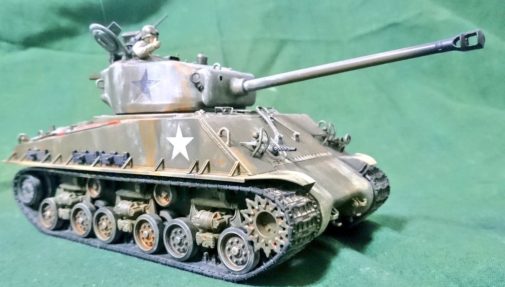 タミヤ、M4A3E8完成しました。 組み立て自体は大変容易であり、手軽に完成させることができ楽しかったです。 お人形の出来も良く、良いアクセントになったと思います。 #今月作ったプラモ晒そうぜ #模型 #タミヤ