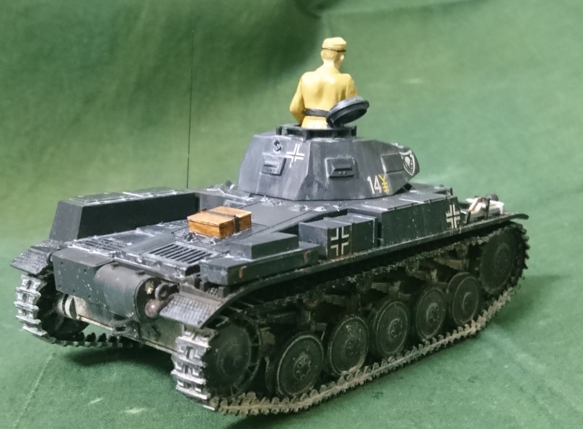 田宮、Ⅱ号戦車完成しました。 ダークイエローで塗装するところをジャーマングレーで謝って塗装してしまったので所属等は出鱈目です😅 車長の塗装は次回の課題ですが、満足いくものに仕上がりました。 #今月作ったプラモ晒そうぜ