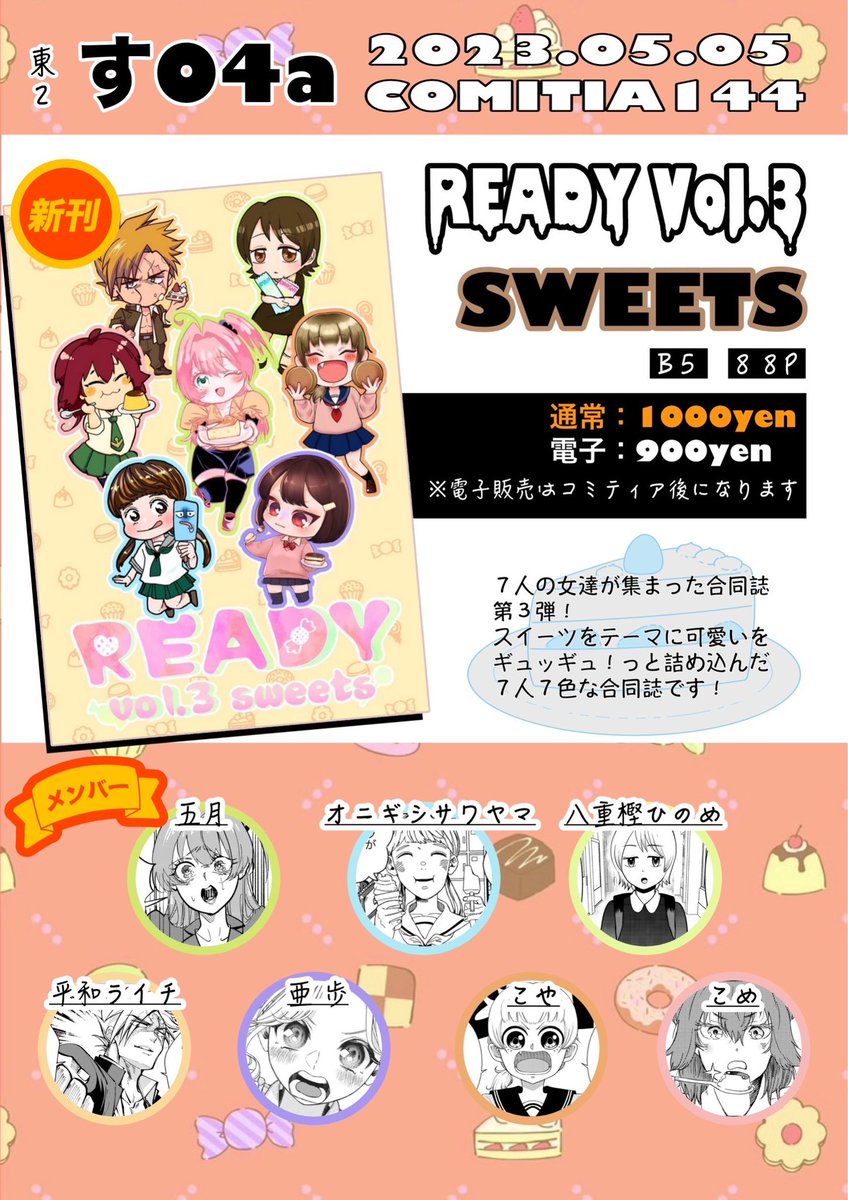 5/5開催のコミティアにて、 新刊というやつを出します! スペース、す04a サークル『READY』さんのスペースに一緒に置かせていただきます! お待ちしてます! #コミティア #COMITIA144