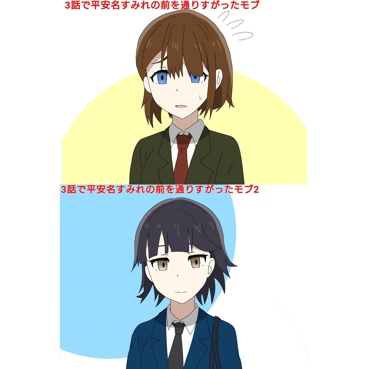 #今年1月絵と現在の絵を比較してみてください 演劇部部長でも比較、うーん…やっぱ下手になってません???成長どころじゃないですよこれ、てか自分1月から演劇部部長にこんな顔させてたの?変わってねー何もかもが!