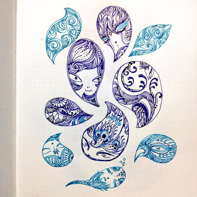 #線画 #ペン画 #イラスト #勾玉ちゃん インクはセーラー四季織の時雨、ラミーのアマゾナイト