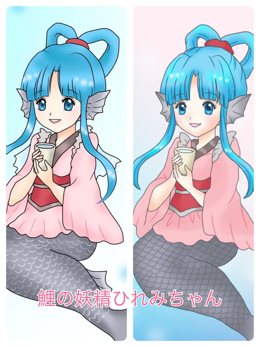 1 12 恋ひれ酒パッケージデザインになった初期のひれみちゃんを描き直しリニューアルして見ました❤️(パッケージデザインの変更ではありません) キラキラが増して可愛くなれたかな? 左が旧デザイン、右が新デザイン #イラスト #萌えキャラ #ご当地キャラ 22/06/18 18:37