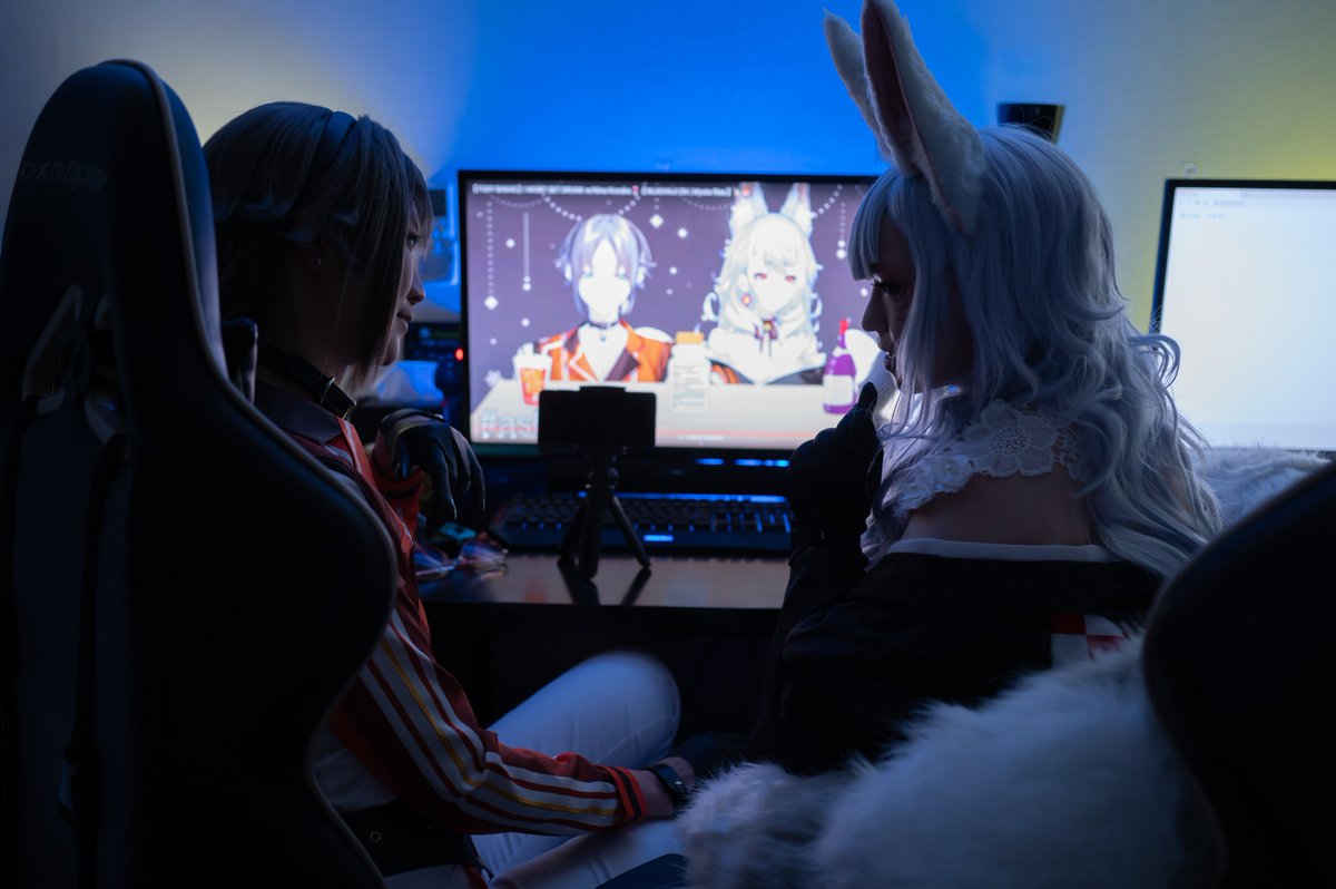 Nina Kosaka: @Hiri_liu Ike eveland:@momichiword *Photo thx: @Tagawa_Seihan *Special thx : @sakuya_edith *排版: @caroalouette #nijisanjien #nijisanji #Ninakosaka #drawkosaka #KosaPlay #ikeeveland #godseesall #cosplay