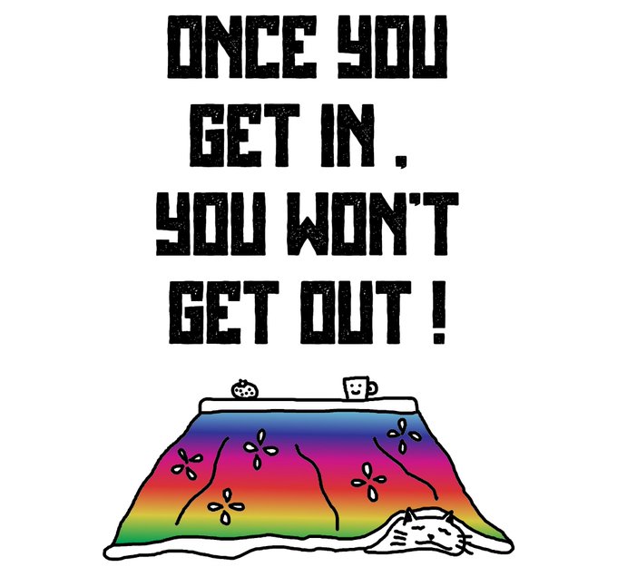 一度入ったら抜け出せない悪魔の箱。 ネコがいたら更に強力… #こたつ #猫 #イラスト #デザイン