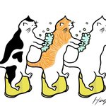 3 30 猫会議後の打ち上げ後の二次会終わりからの締めでラーメン食った後の銭湯♨ ちょっと絵本を意識📖 #イラスト #ねこ #Tシャツあります #銭湯 23/03/15 16:10