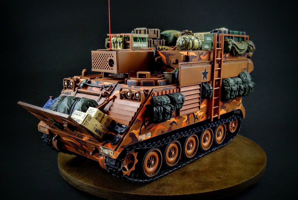 0 3 #今年作ったプラモ晒そうぜ タミヤ M577コマンドポスト作りました。 オリジナルのカラーリング、↓に制作途中も載せてます。 よければどうぞʘ‿ʘ y~ 20/12/30 12:04