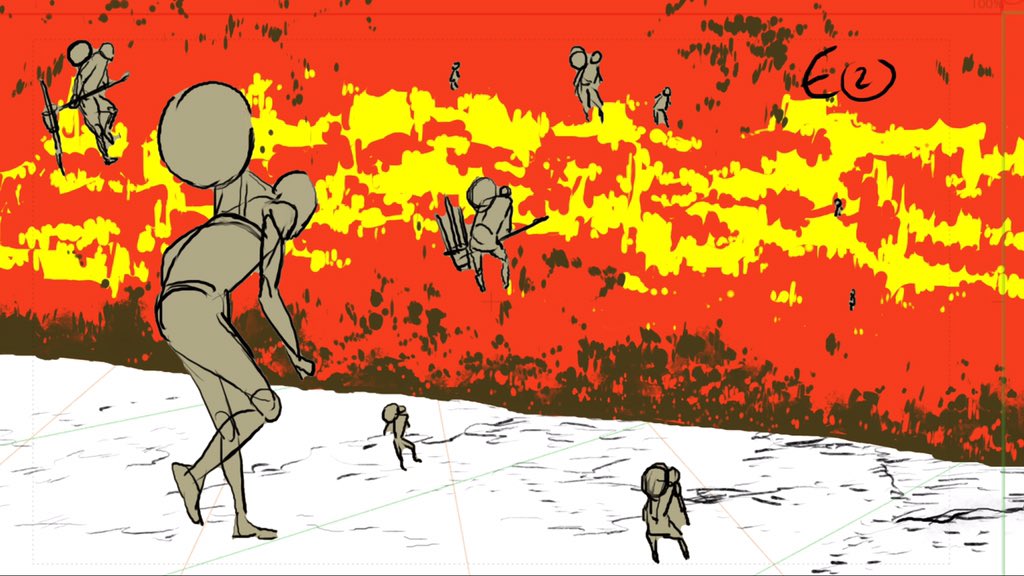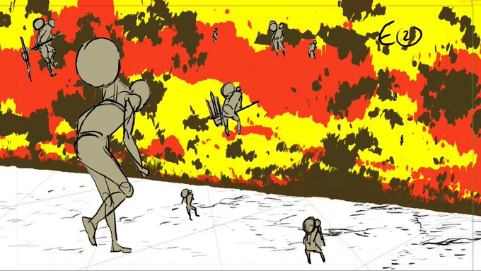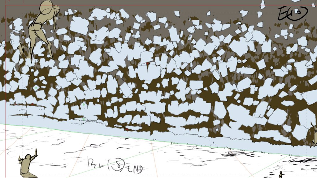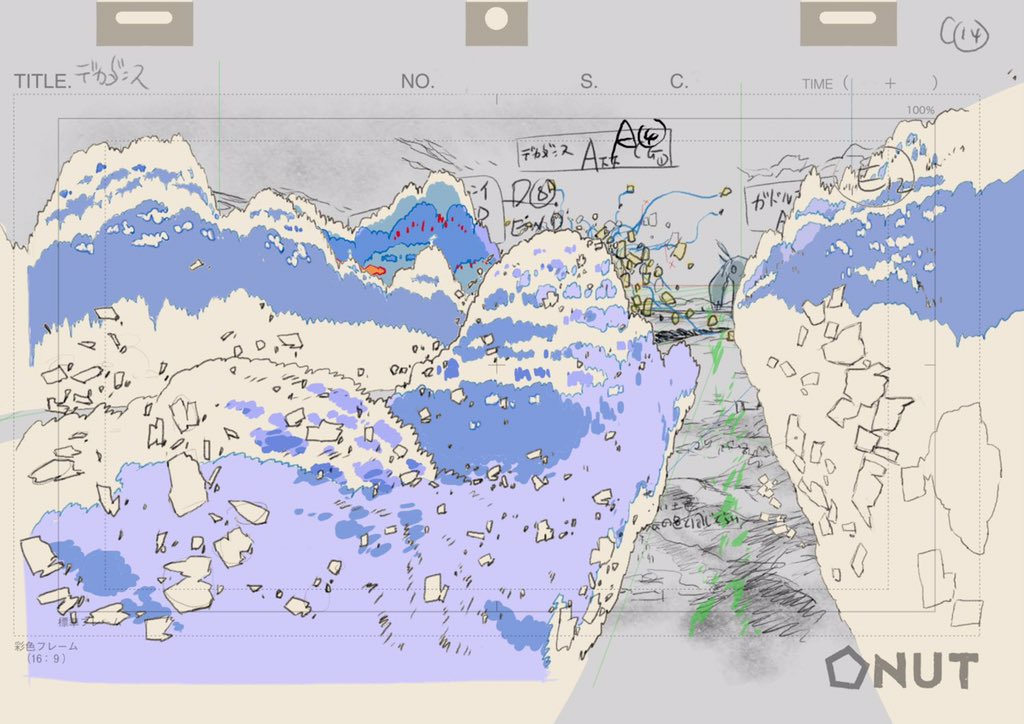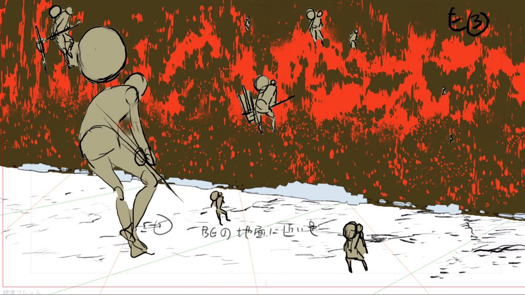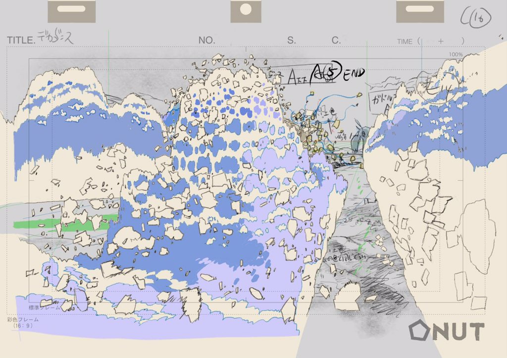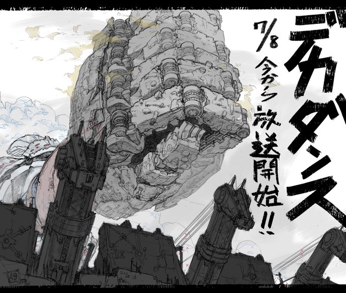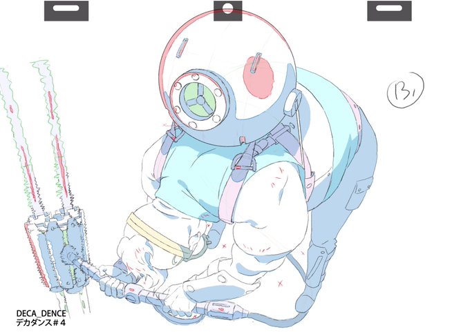 1話の後の取材でも載せて頂いた初期のイメージ絵を上げていきます。デカダンスがどういうふうに斜面を登るかーというシチュエーションです。今夜最終話ですよ〜 #デカダンス #DECA_DENCE