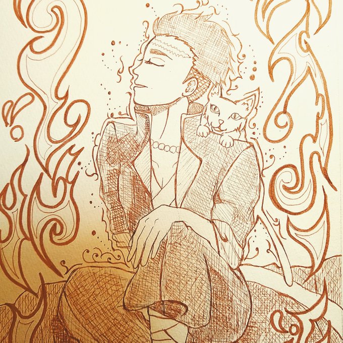 年相応の悲鳴嶼さんをみたくてかきました✨雰囲気でてるでしょうか…? とりあえず柱チャレンジ終了✨ #悲鳴嶼行冥 #悲鳴嶼行冥イラスト #ひめじまぎょうめいイラスト #鬼滅の刃 #鬼滅の刃イラスト #ミリペン #セピア #猫のイラスト #トライバルアートアート