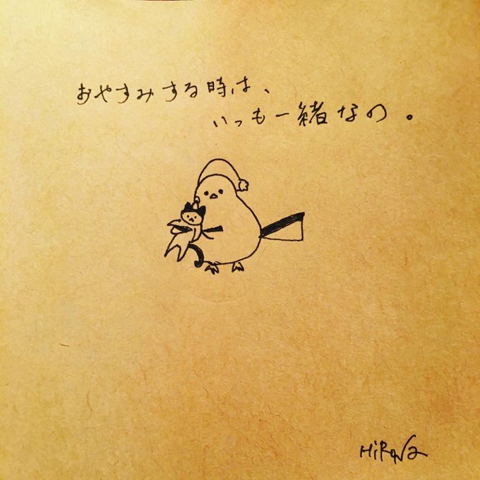 ◯⚪︎◉HiRoNa.38◉⚪︎◯ 『寝る時はいつも一緒なの』 #宏菜 #HiRoNa #下北沢 #ペン画 #落書き #猫 #シンガーソングライター #シマエナガ #ねこ #ねこのいる生活