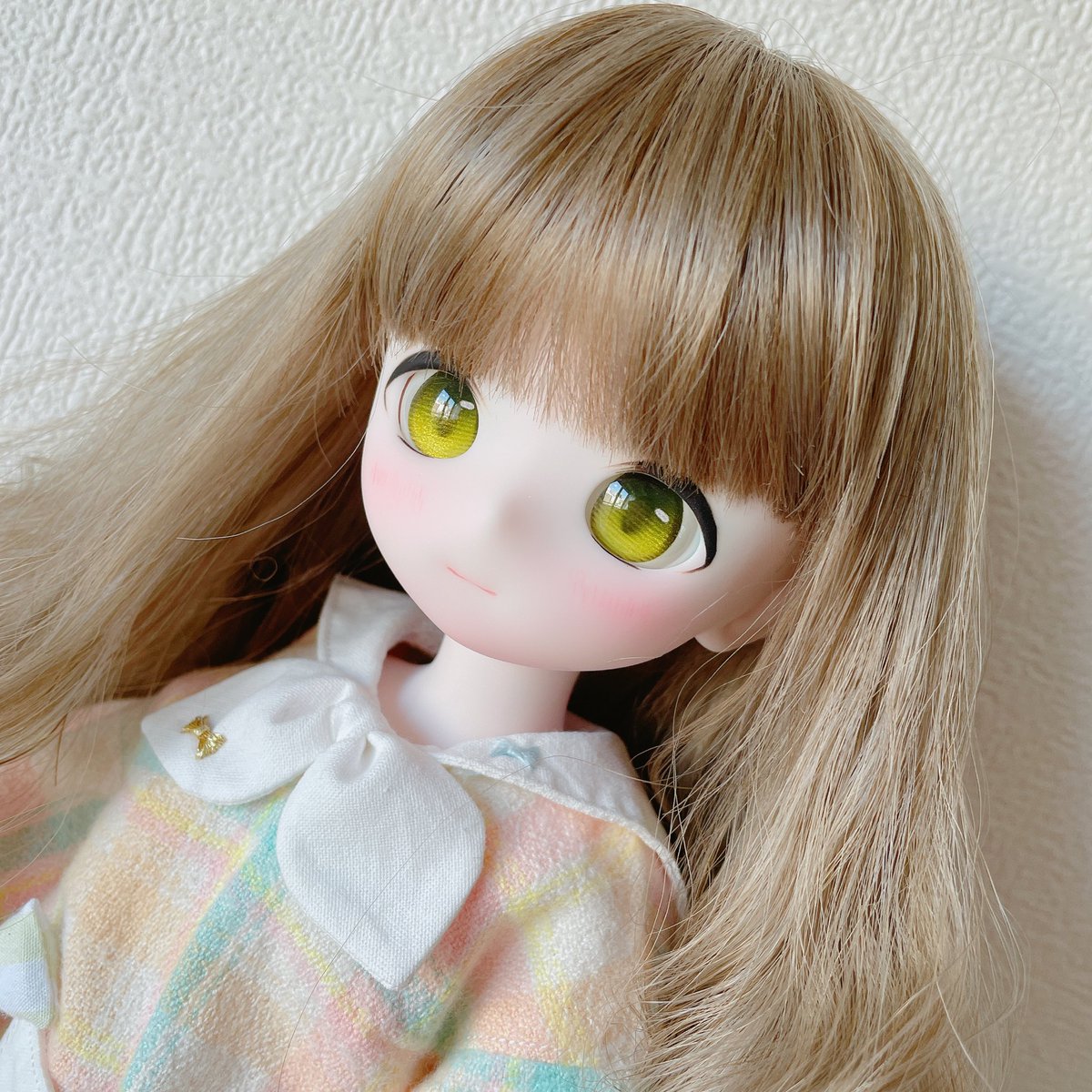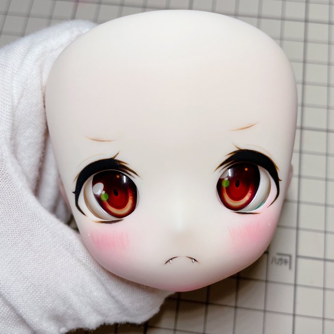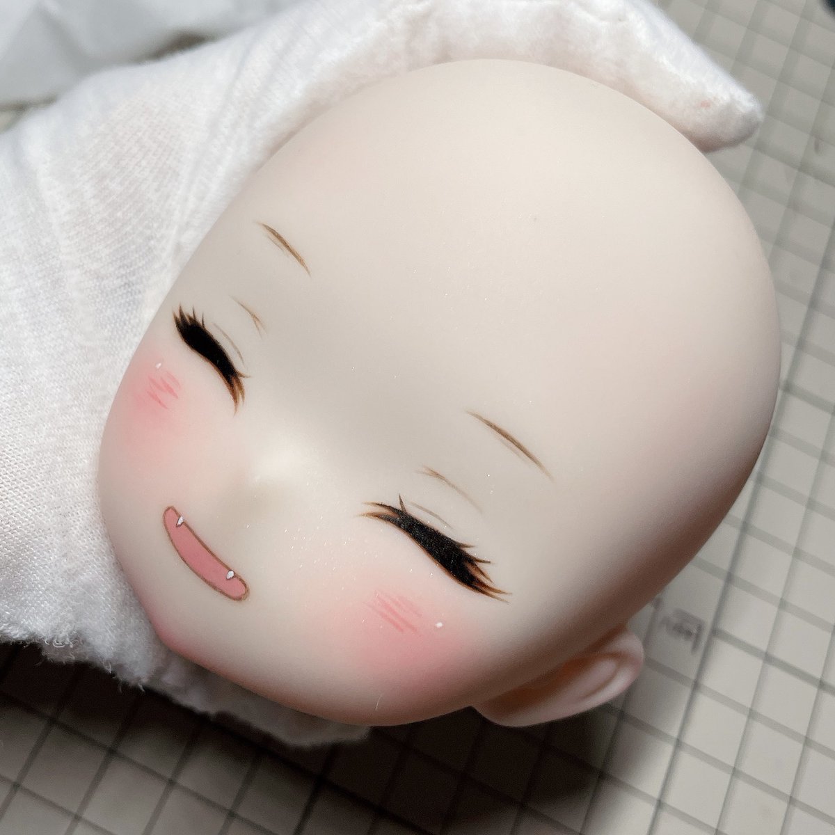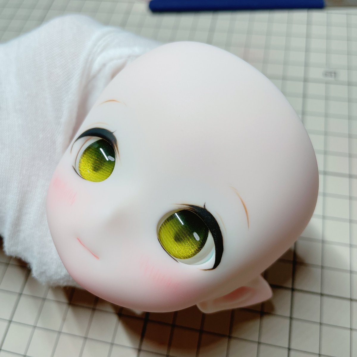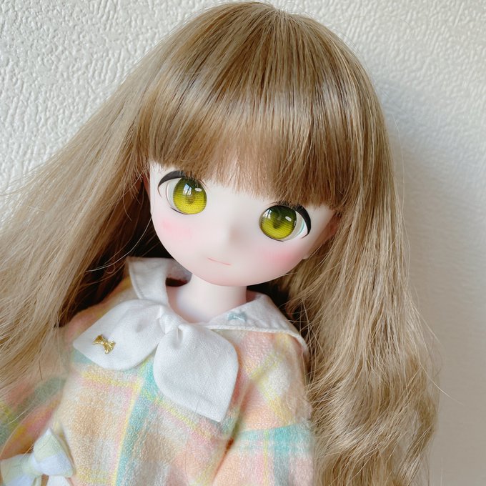 Lalaちゃんも最終仕上げ出来ました💕 今回はちょっとシンプルなまつ毛だけど可愛いと思った😍 緑色のお目目よく似合ってるー みさこちゃんももうすぐうちに来るから楽しみ🤣 #Kumakoちゃん #kumako #MDDはいいぞ #puyoodoll #カスタムヘッド