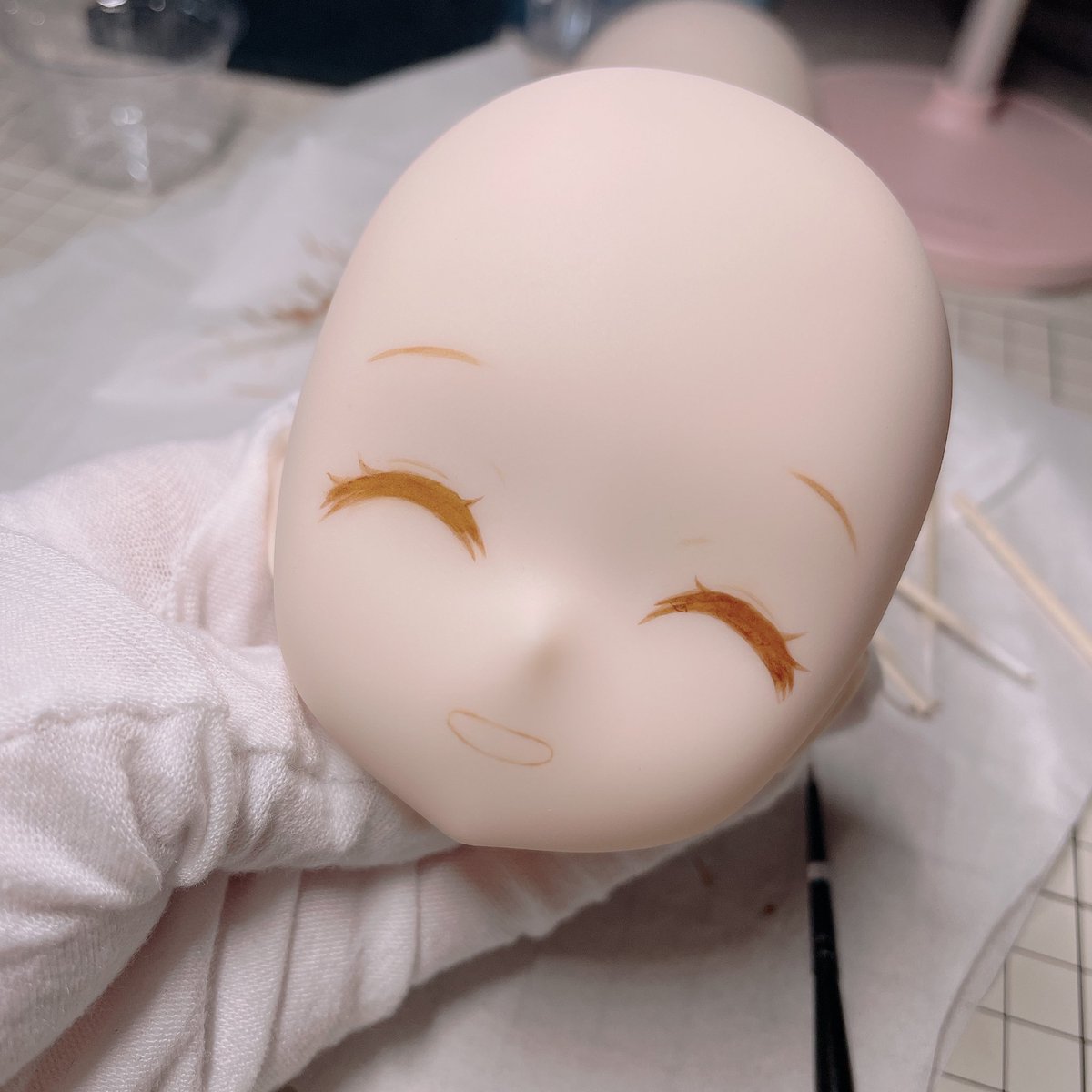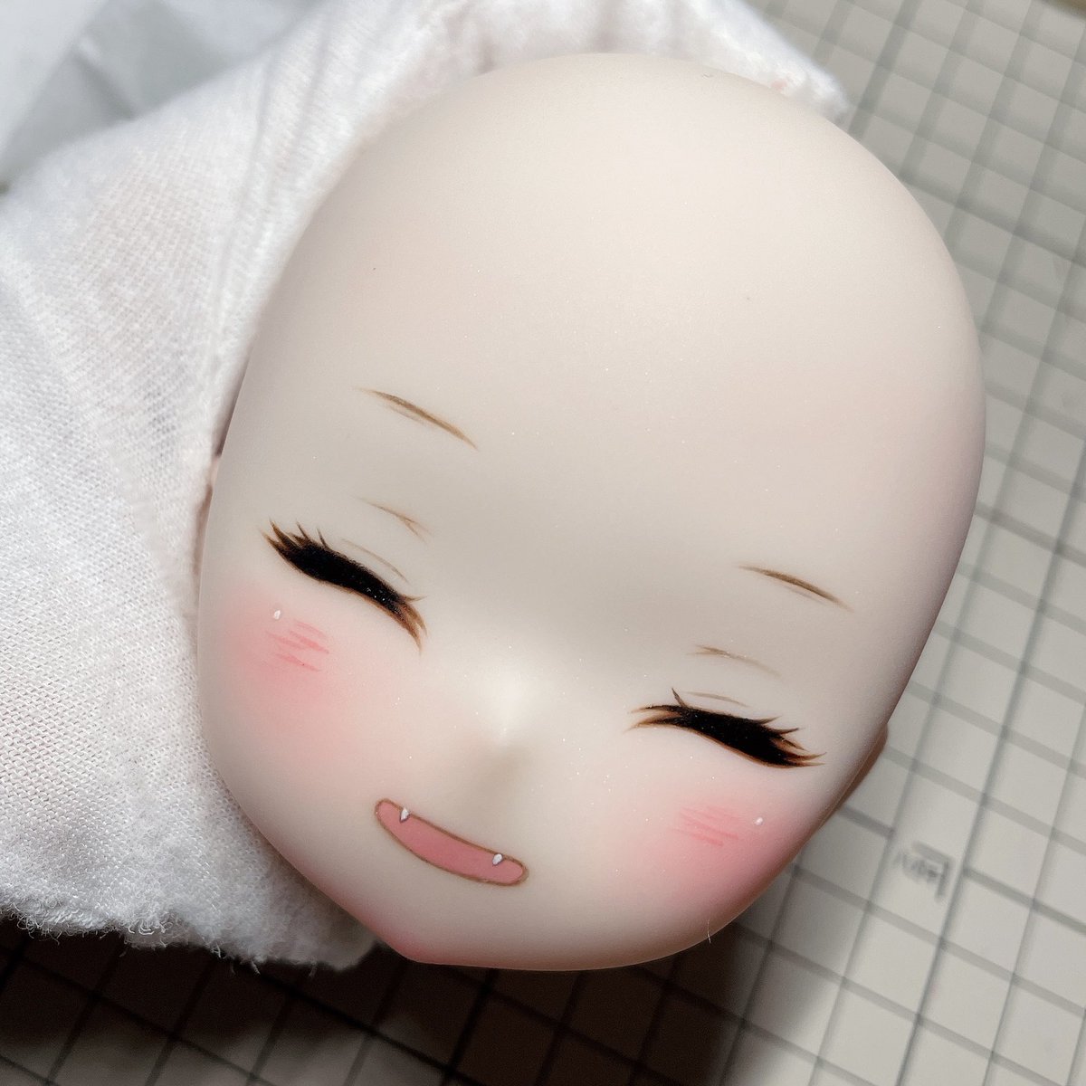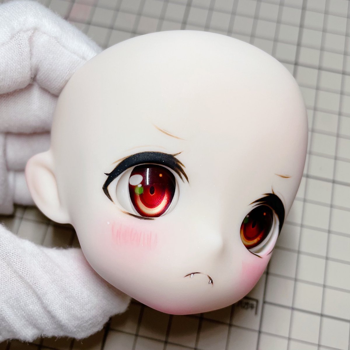 Lalaちゃんも最終仕上げ出来ました💕 今回はちょっとシンプルなまつ毛だけど可愛いと思った😍 緑色のお目目よく似合ってるー みさこちゃんももうすぐうちに来るから楽しみ🤣 #Kumakoちゃん #kumako #MDDはいいぞ #puyoodoll #カスタムヘッド