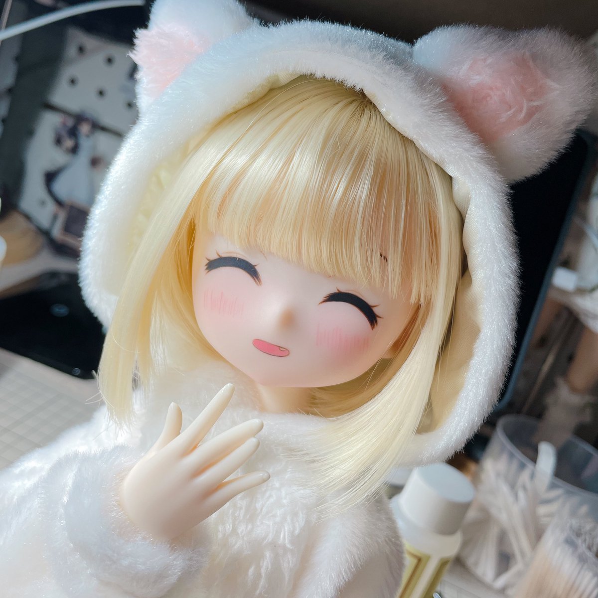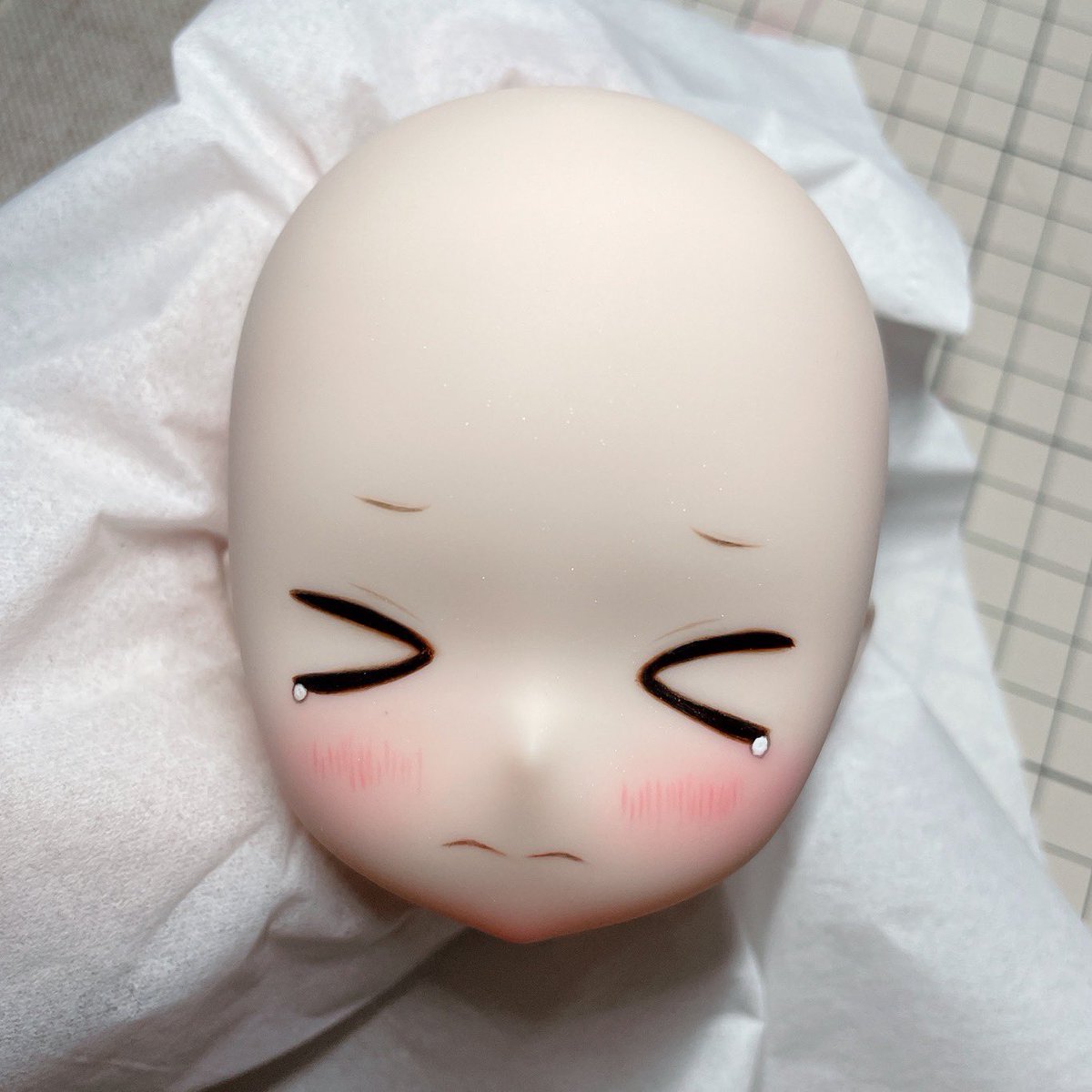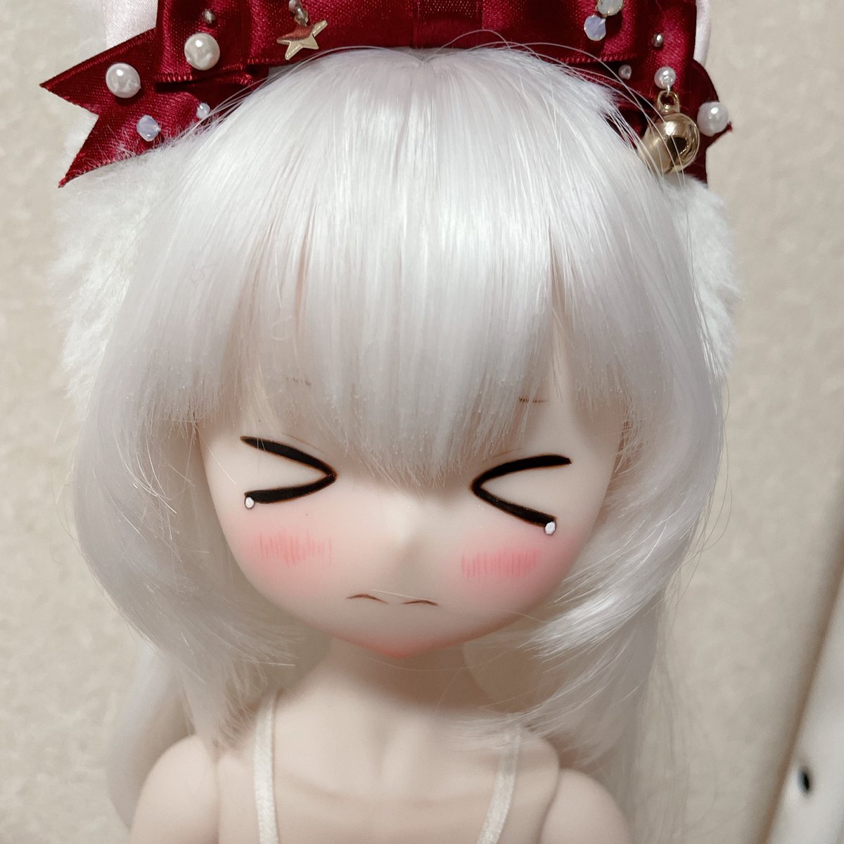 もう1人の eggちゃんですー 展示用のボディが足りなかったのでこのまま写真撮りましたけど可愛いー 泣きそうな顔でいじめたくなる🥺 #Kumakoちゃん #うちの子かわいい #ドールオーナーと繋がりたい #MDDはいいぞ #egg01ちゃん #みよんっこ