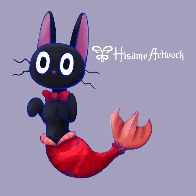 #jijithecat from the #anime #kikisdeliveryservice from #StudioGhibli😃as a #mewmaid for #mermay😛 See how I do the characters: twitch.tv/hisame_artwork Join the final collage, send us your #mermaid #illustration: discord.gg/Q5MeNHX #HisameArtwork #mermay2020 #cutecats #chibi