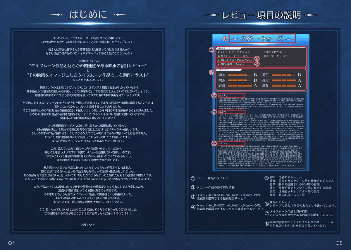 64 267 コミケ新刊の映画紹介×イラスト本のサンプルです🌴 サンプルの他にも"Fateの原点"「魔界転生」や、"奈須きのこ先生・武内崇先生の両名に影響を与えた名作"「ショーシャンクの空に」などなどの映画を取り扱っています🎬 ご興味ある方は"1日目 西き-35b"までぜひお越しください 🙇♂️ #FGO #C102 23/08/10 20:30