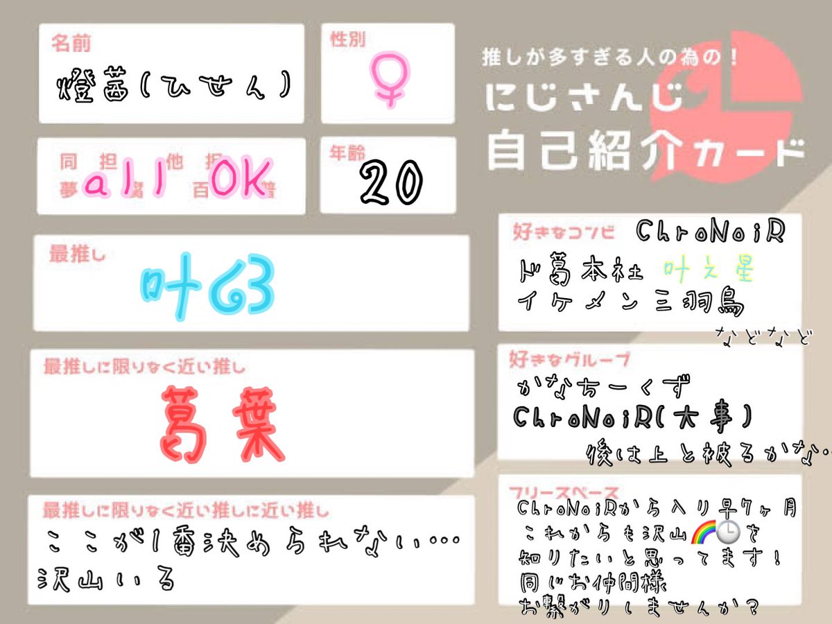 🏷𓈒𓏸︎︎︎︎失礼します! 主に🌈🕒 🖤にお熱のコスプレイヤーです!!!! 新年度を節目にたくさんのお友達を作りたいなと思っています! RTを中心に♡も巡回させていただきます! #にじさんじ好きさんと繋がりたい #コスプレイヤーさんと繋がりたい #にじさんじレイヤーさんと繋がりたい