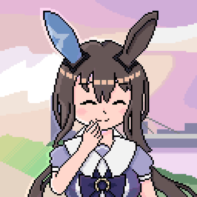 アヤベさん! 双子の猫のイベントとかで見せてくれる優しい表情が大好きです。 あと夕暮れの逆光がとても似合う気がする…! #ウマ娘 #ドット絵 原寸大はpixivに置いてあります↓ pixiv.net/artworks/99183…