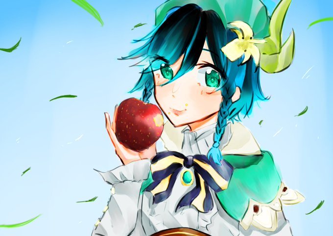 0 7 りんご貰った吟遊詩人🍎 #venti #ウェンティ #原神イラスト 22/04/26 20:30