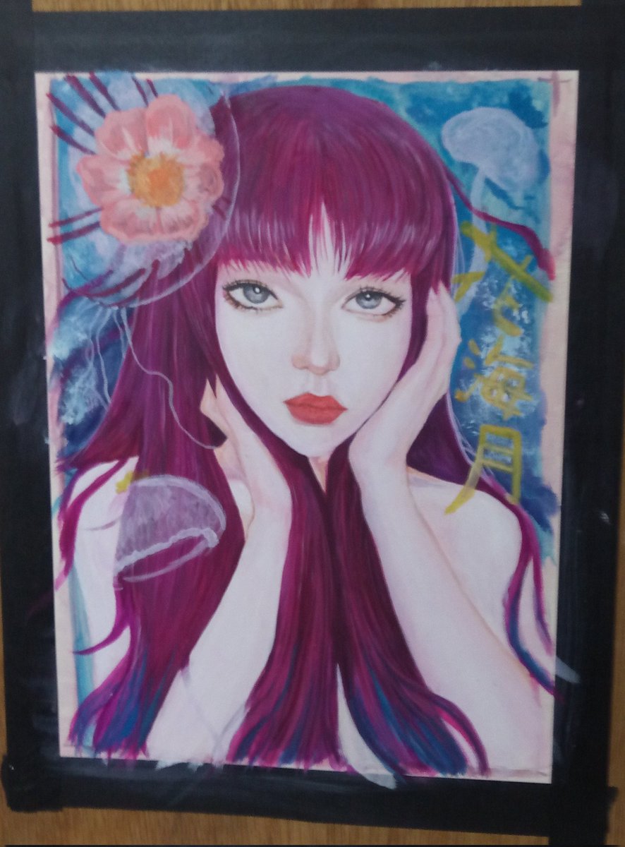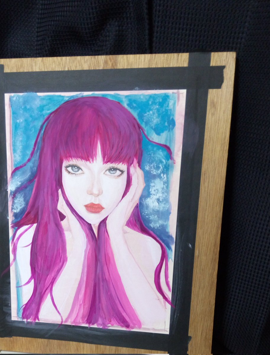 久しぶりに 水彩とアクリル もうちょっと時間かかりそう ( ´;゚;ё;゚;) #イラスト好きな人と繋がりたい