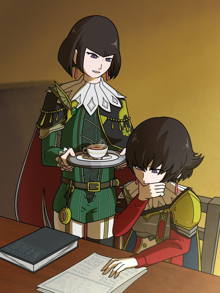 0 6 フィオロンらくがき✍️ 激務に疲れ果てたフィオレーネと、萎れた花に水をやろうとしているロンディーネ。 23/02/08 00:07